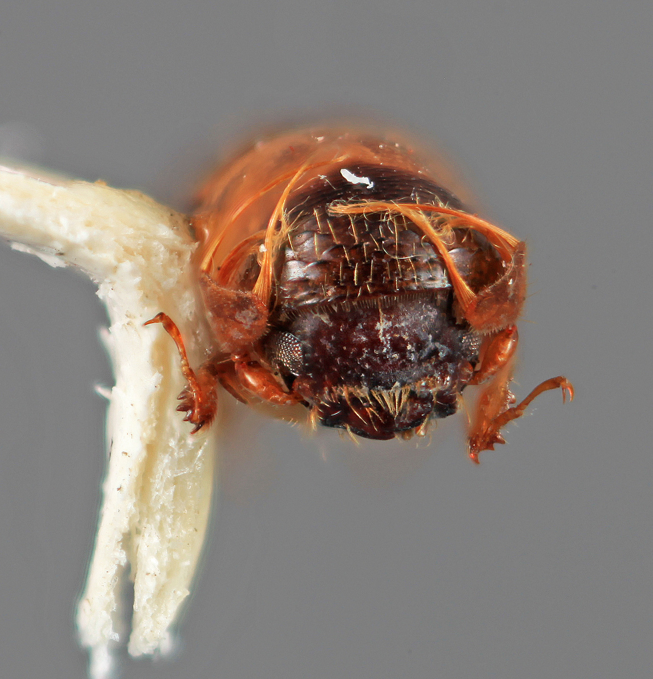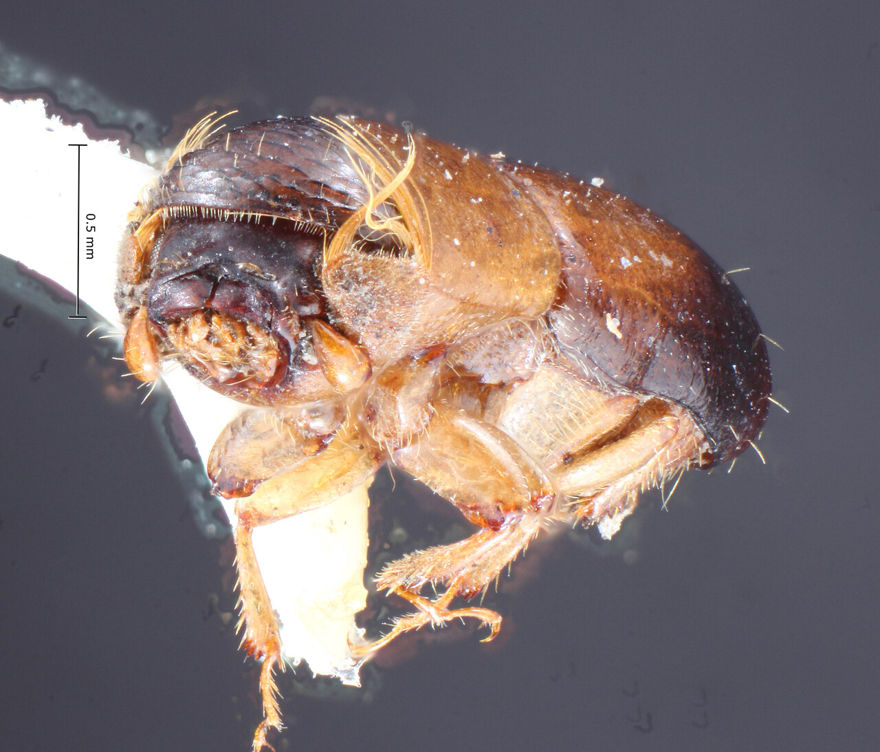 This species belongs in the genus Monarthrum, not Amphicranus. The pattern of sexual dimorphism in both the antennal club and the declivity clearly places it in the first genus. The protibia of both males and females is slender with only a small number of tubercles on the posterior face (larger in males). Additional species that probably belong with this species include `eggersianus Wood, sexdenticulum Wood, and araguensis Wood. (Atkinson 2017).