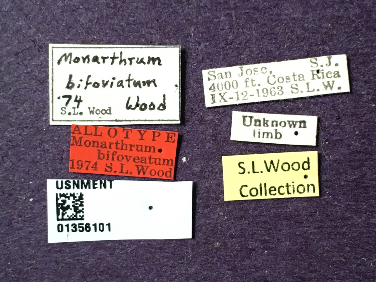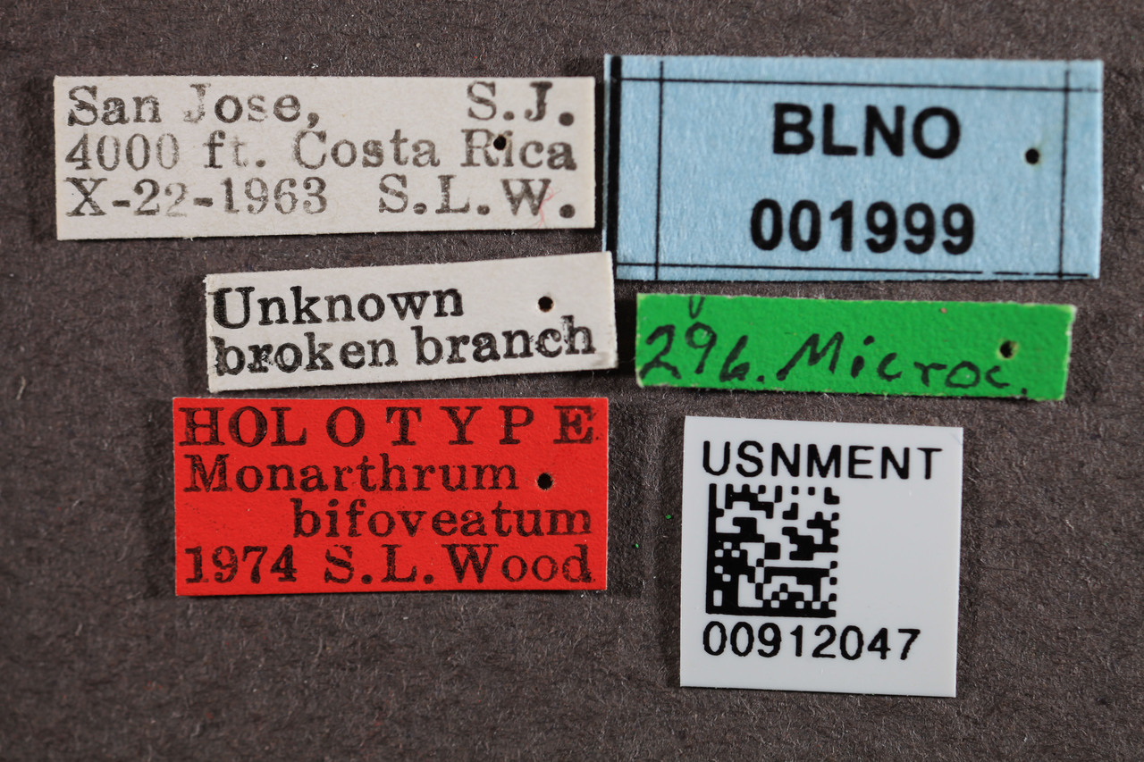 Monarthrum bifoveatum Wood, 1974