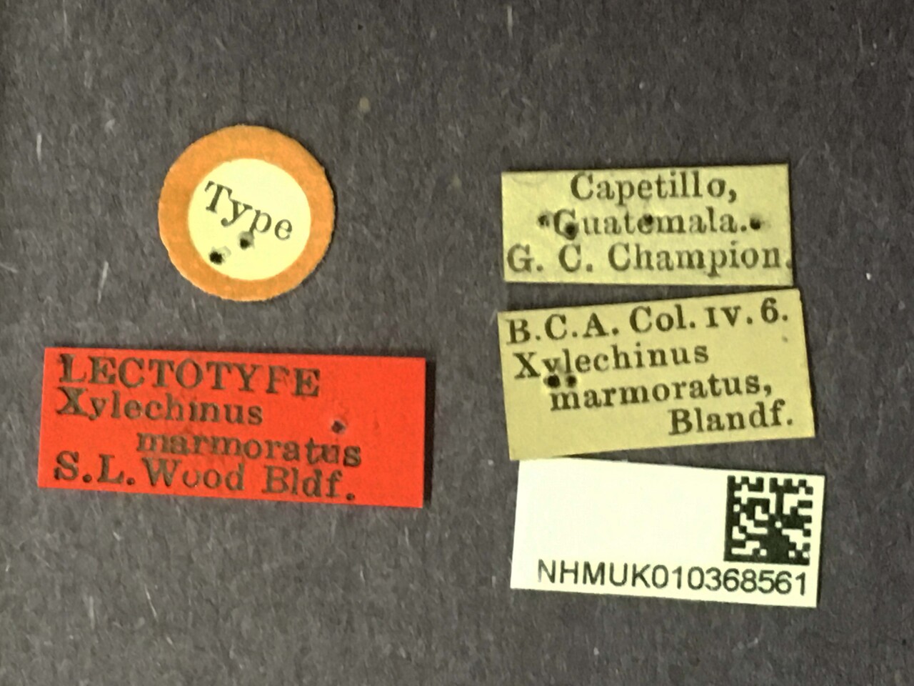 Xylechinus marmoratus and X. mexicanus are very similar and may be synonyms.